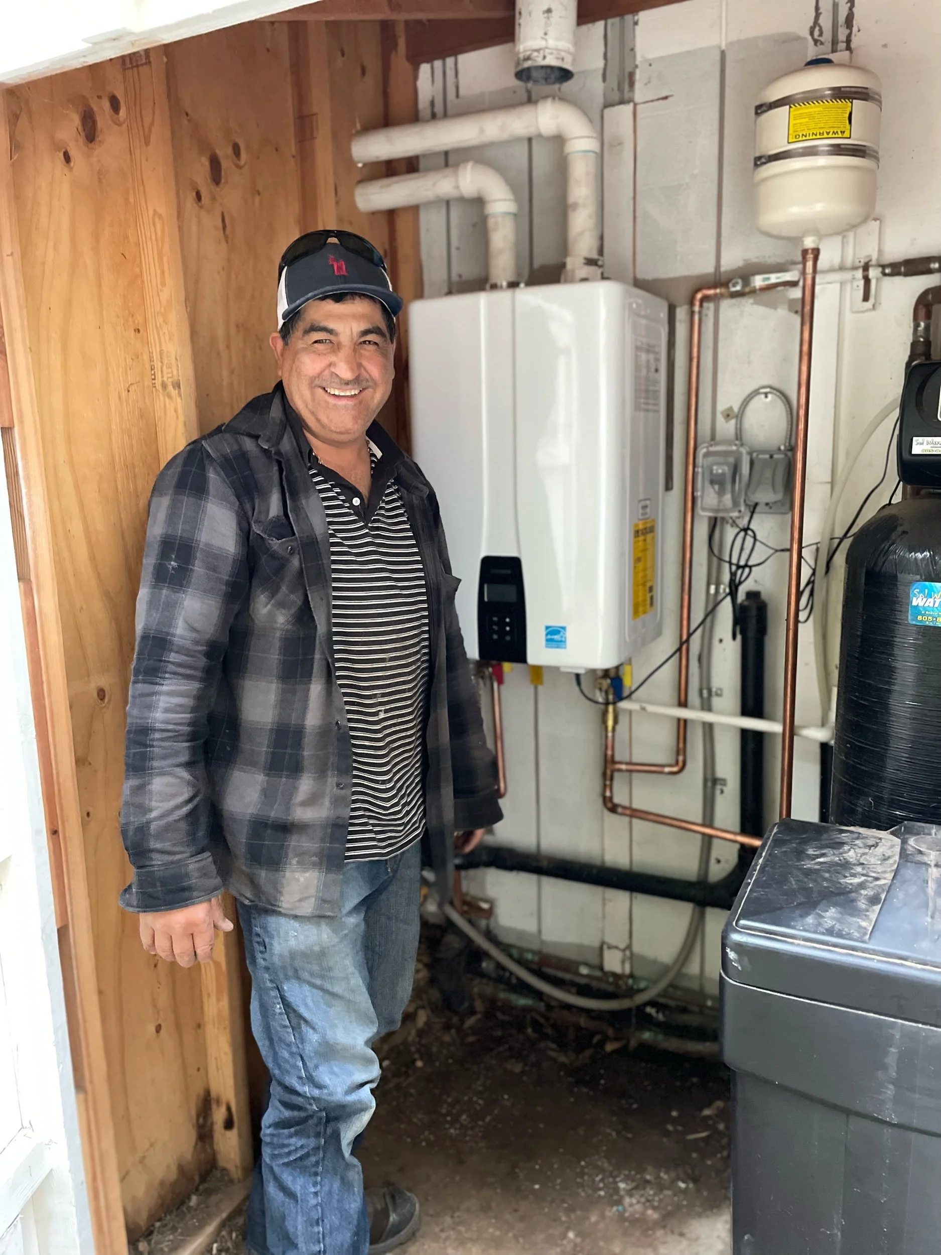 Navien, a Korean manufacturer of water heaters is known for making some durable tankless units. Pictured below is their flagship NPE 240A2 model which we like to install here in Santa Barbara, CA. These units are equipped with dual stainless steel heat exchangers and come with a built in recirculating pump. For this particular application, since there was no dedicated recirculating line, we installed the Navi Circ crossover valve underneath the bathroom sink that was furthest away from the unit.